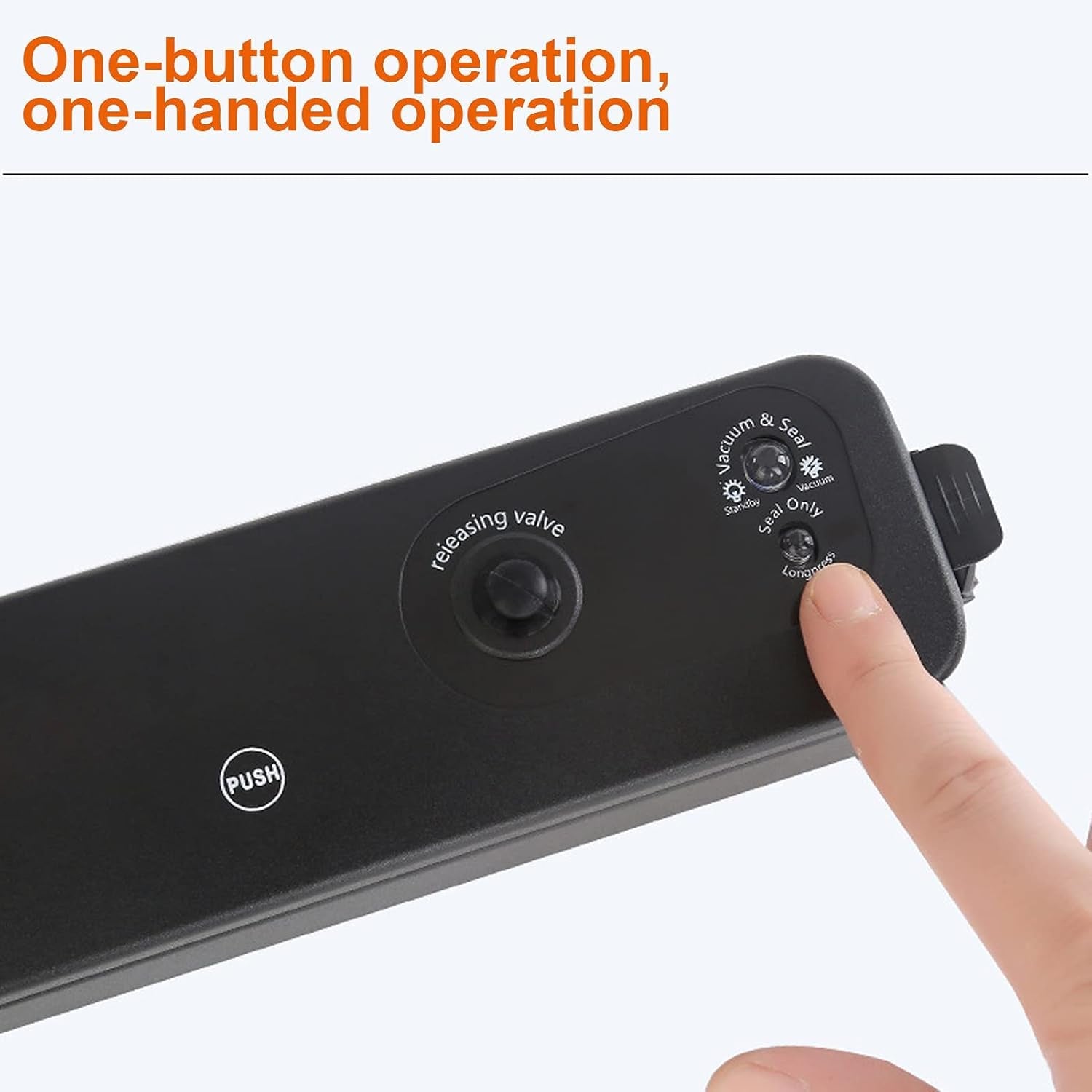 - One-button sealing method - One-button automatic food sealer is designed to seal the bags with just one long-press single sealing. It gives your kitchen, fresh-keeping magic with its strong suction that creates excellent sealing strength.