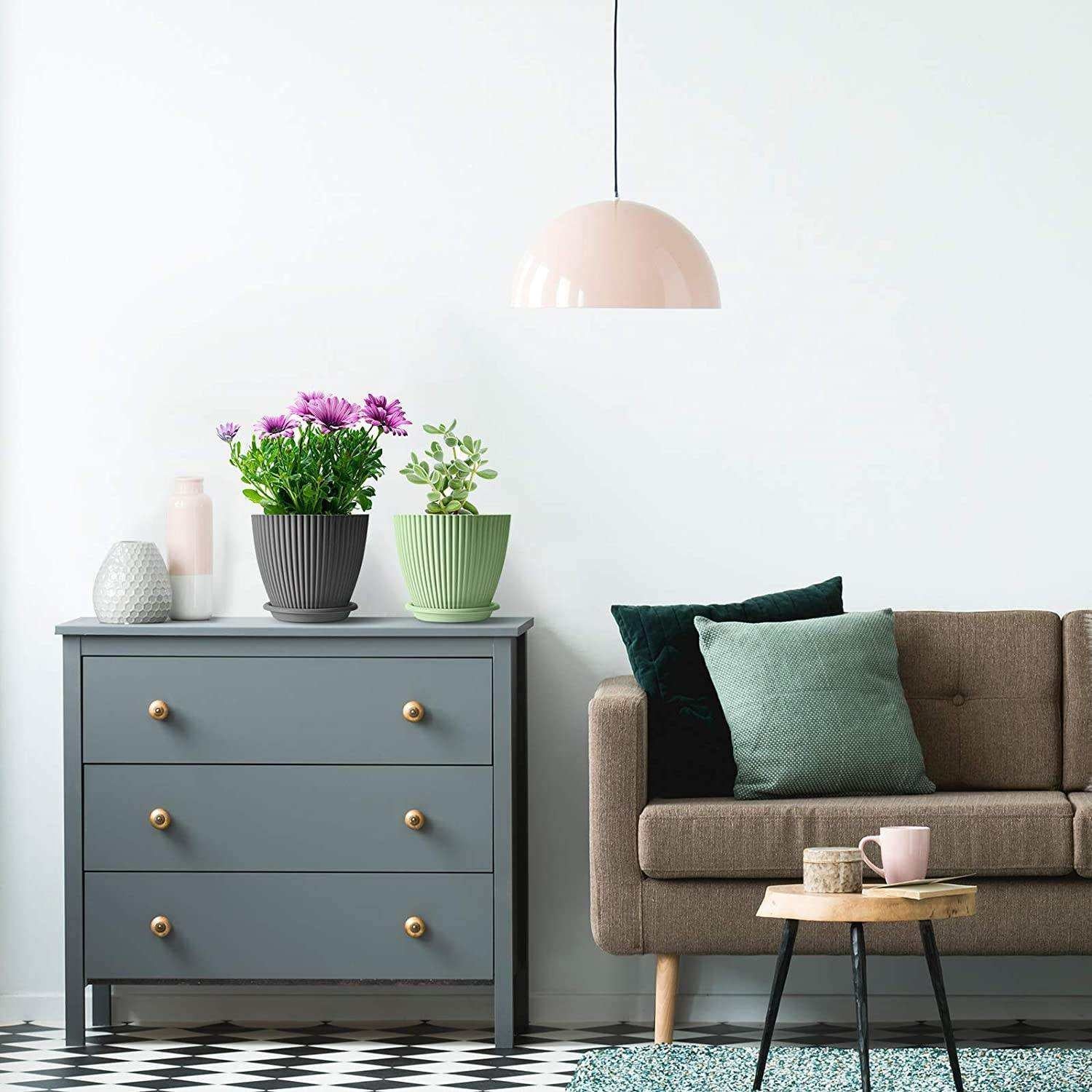 - Minimalist Styled Plant Pots: The Flower Plant Pots are designed with matte finishing exterior in soft, round shapes, bringing out a modern minimalistic styled ceramic like visual representation, with brief stripes making the planters special, fits for any home/office decor. And smooth glossy inner finish for easy cleaning. Great for replanting, and for flower plant lovers.