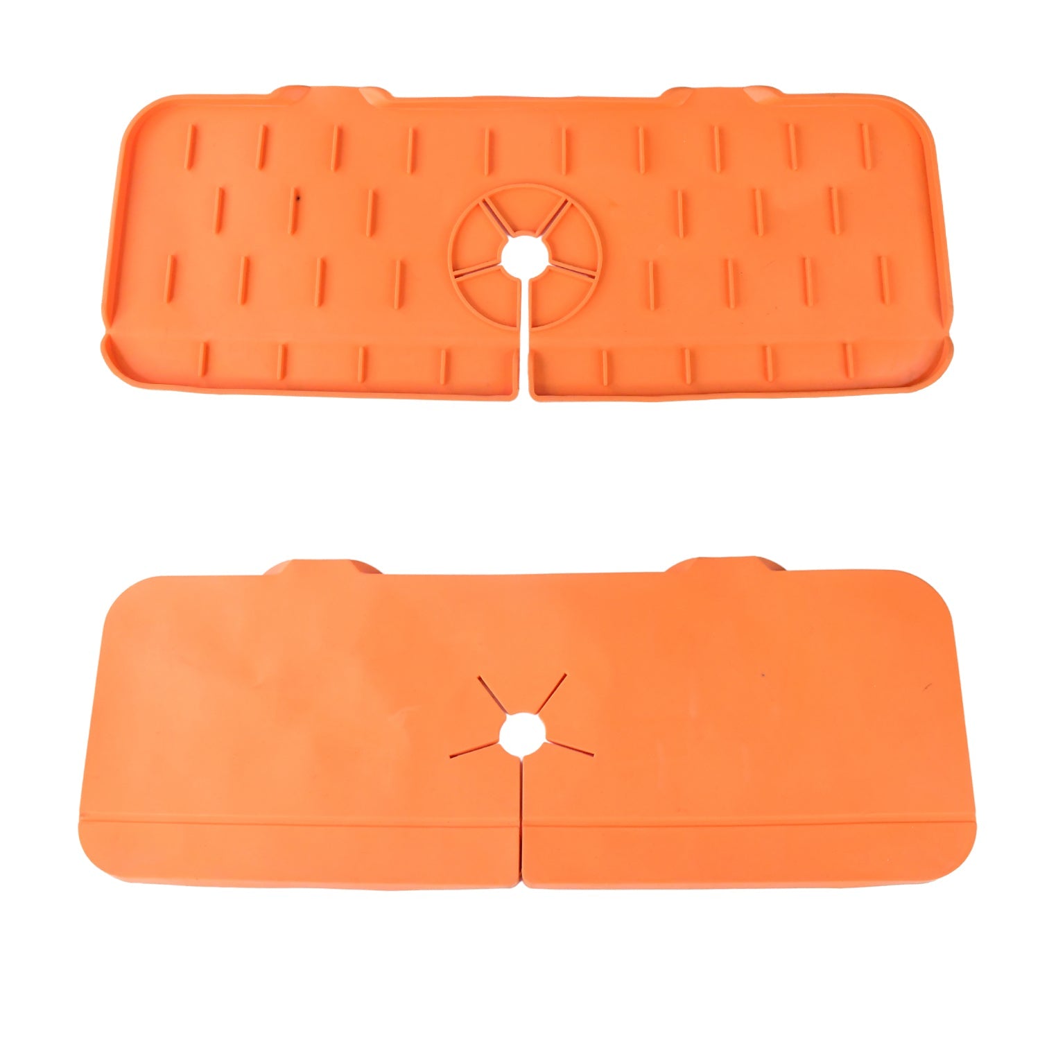 - The silicone faucet mat is made of silicone, soft and reliable, reusable, won't scratch your plate, easy to use. Our faucet splash catcher is designed with drainage, so you don't need to worry about standing water on your mat or countertop.