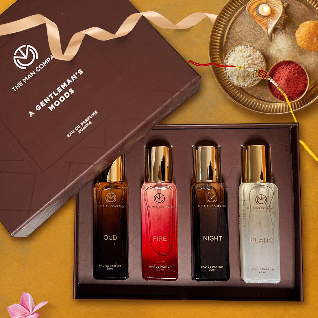 Here is your chance to indulge your senses with four luxurious fragrances in one go. We believe a true gentleman deserves nothing less than the best, and we deliver just that with our premium fragrance gift set - A Gentleman's Moods. A perfect boardroom fragrance, Blanc, boasts crisp notes that command respect and exude confidence. In all senses, it is the scent of success. A perfect accompaniment for laidback evenings and casual parties, Night, keeps the nights always young with its elegant and refined notes. With its woody notes and sensual undertones, Fire is the ultimate choice to ignite the party animal vibe. An opulent scent that captures the essence of celebrations, Oud, is what it feels like to wear the festive grandeur.
