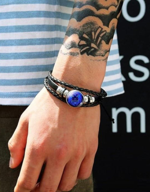 Adjustable Guardian Zodiac Constellation Capricorn Bracelet Black Leather