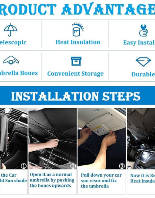 Car Windshield Sun Shade Umbrella, 3 Layer UV Block Umbrella