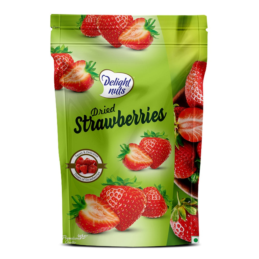 Dried strawberries offer a concentrated sweet berry flavor. They also have a chewy texture. Once dried, the strawberry has a deep red color.