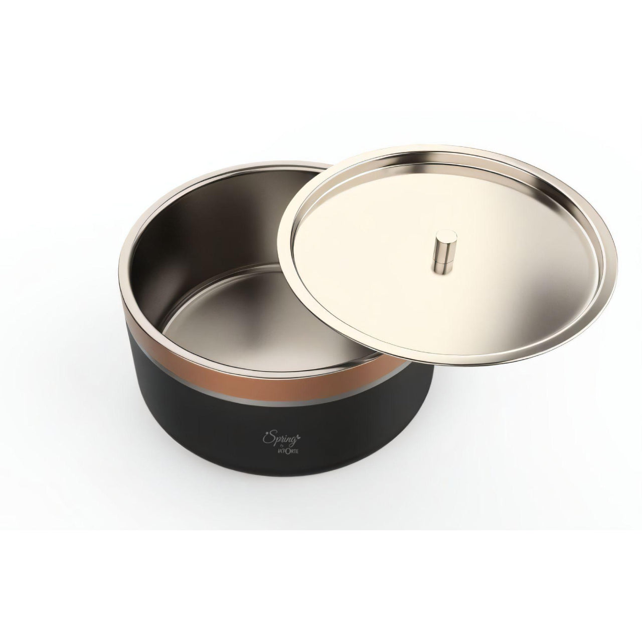 Double Wall Stainless Steel Casserole with Lid | 1200ml Capacity (1700ml Without Lid) | Food-Grade Steel | Multipurpose Serving Bowl | Black & BeigeCasserole-Black