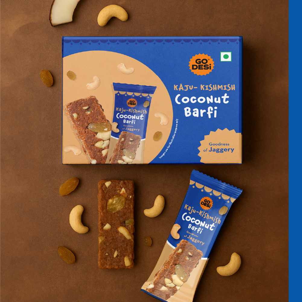 GO DESi - Kaju Kishmish Coconut Barfi | Dry Fruits Sweet | Cashew & Raisin Bar | Indian Mithai | Sweets Gift Pack | No Added Sugar | Pack of 8 | 12 grams each