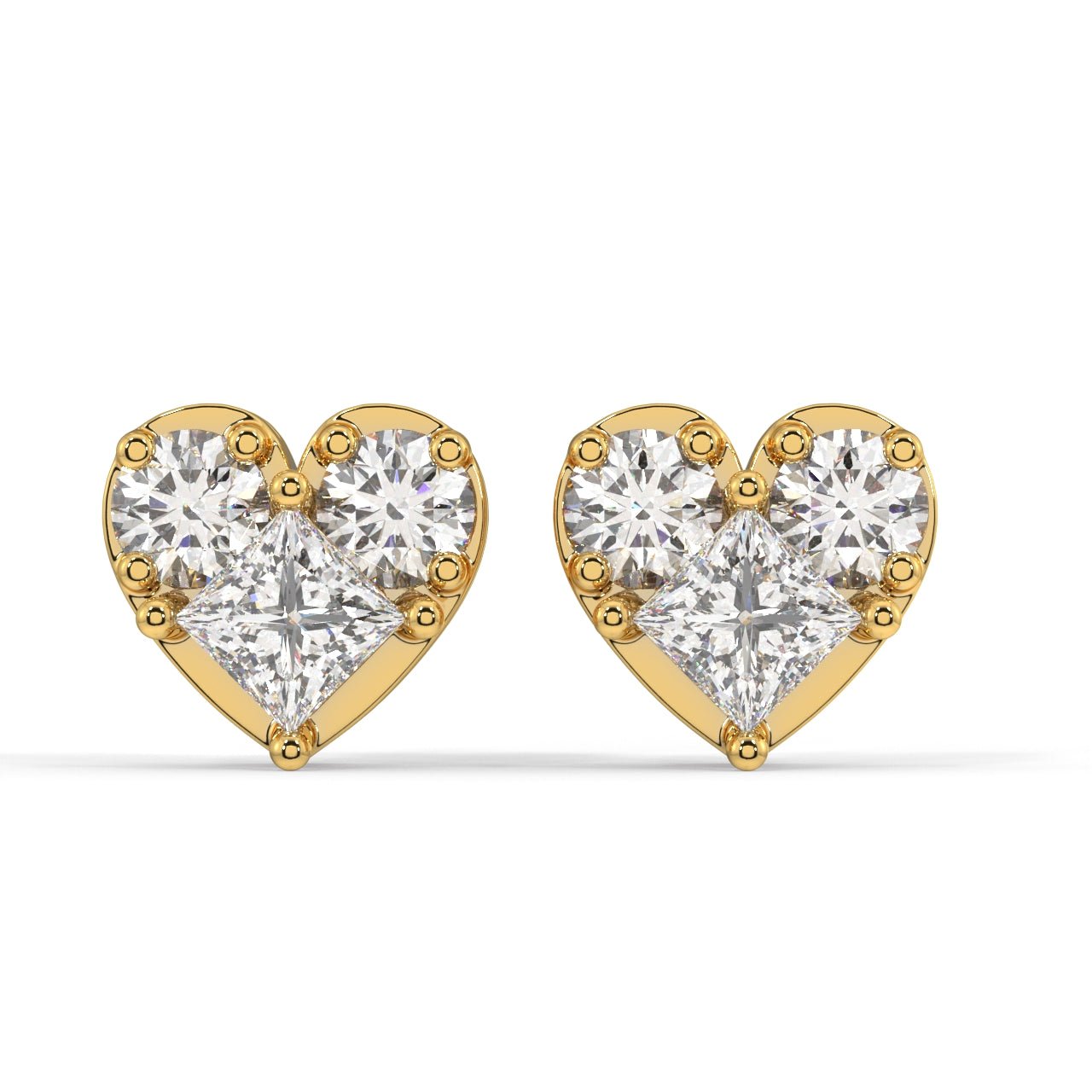 The Golden Heart Earrings feature a heart-shaped design accented with two round diamonds and one princess-cut diamond, exuding a blend of elegance and charm. These earrings boast a minimalistic appearance, ideal for daily wear, adding a touch of sophistication to any outfit effortlessly. With its subtle yet captivating design, the Golden Heart Earrings are a perfect accessory for everyday glamour, symbolizing love and grace in a timeless fashion statement.