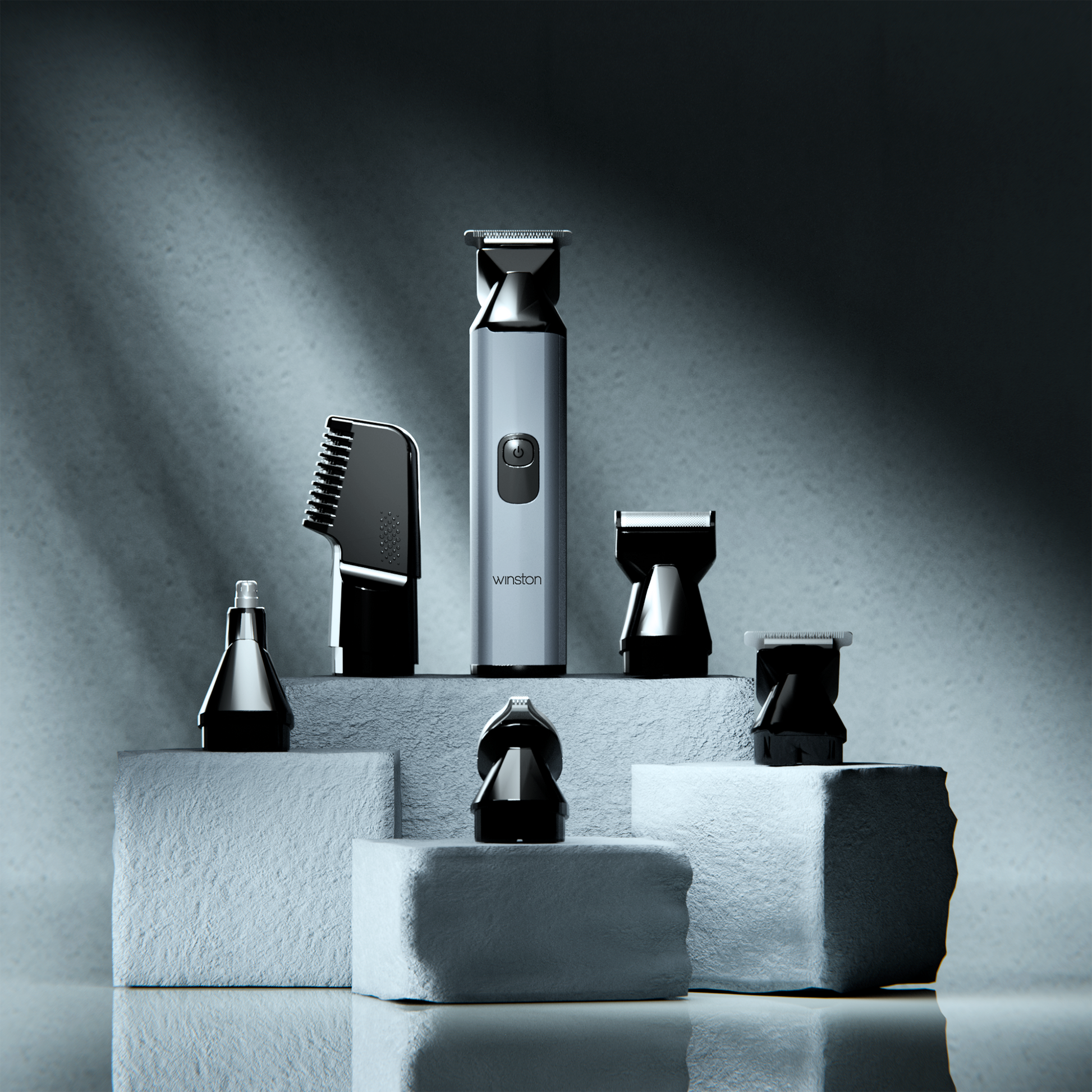 Winston Groom 360 is a full body trimmer for men that comes with 5 different grooming heads. Featured with advanced edgesense technology and stainless steel blades, it provides smooth, comfortable trim every time. The 7000 RPM motor, IPX7 waterproof design with type-C rechargeable mechanism ensures unwavering performance every time even under the shower.