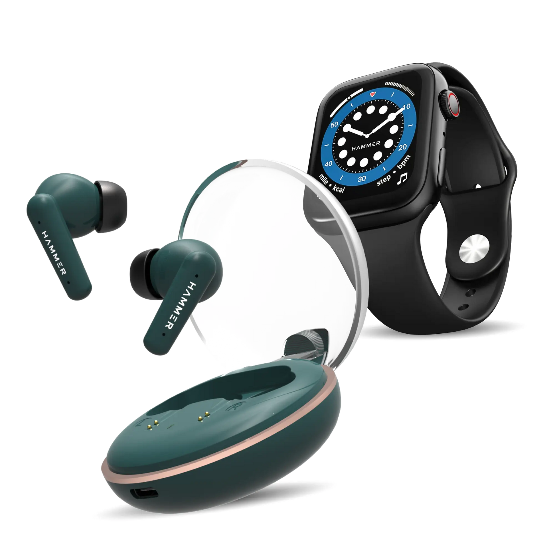 Hammer Airflow Plus TWS Earbuds & Ace 2.0 Bluetooth Smartwatch (Combo)Airflow plus + Ace 2.0