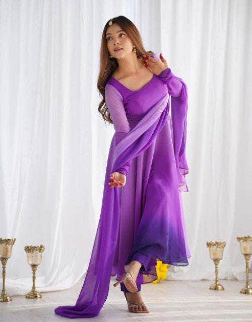 HEAVY PURE SOFT FOX GEORGETTE COLOURFULL GOWN