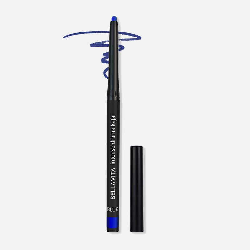 Make a bold statement with our Intense Drama Kajal in the funkiest shade in the market- electric Blue. This vibrant hue adds a pop of color to your eyes, making them the center of attention. The precision tip allows for a smooth, effortless application, while the intense pigment ensures your look stands out. Our smudge-proof formula guarantees your bold blue kajal stays put, keeping your style fresh and striking all day long.