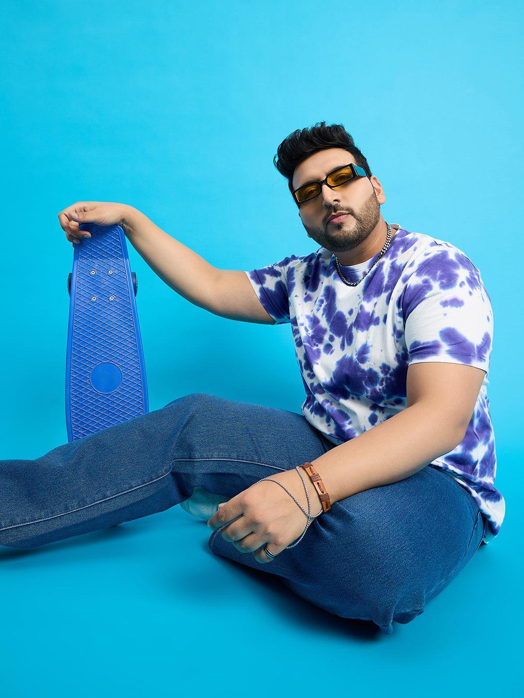 Men Plus Size Doton-Purple Printed Round Neck Tshirt