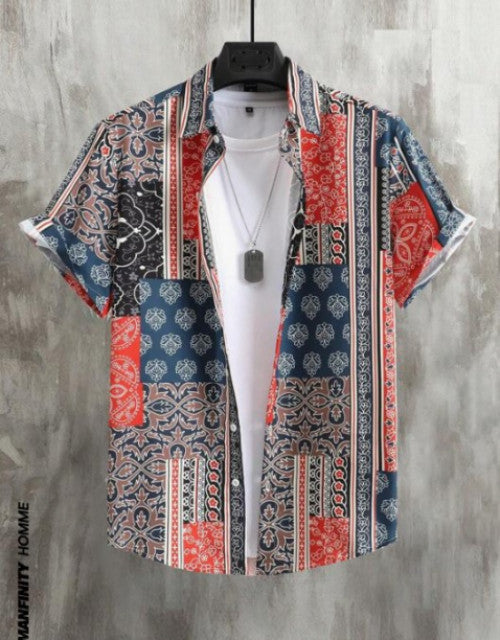 Men Regular Fit Printed Cut Away Collar Casual Shirt