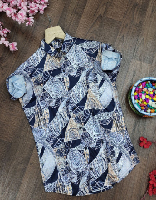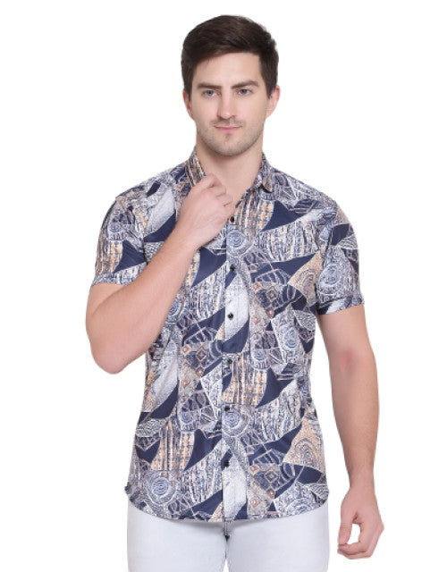 Men Regular Fit Printed Ribbed Collar Casual Shirt