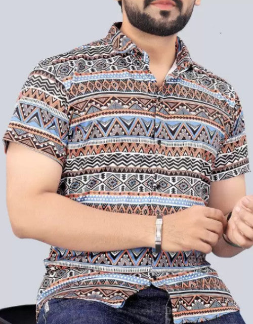 Men Regular Fit Printed Spread Collar Casual Shirt