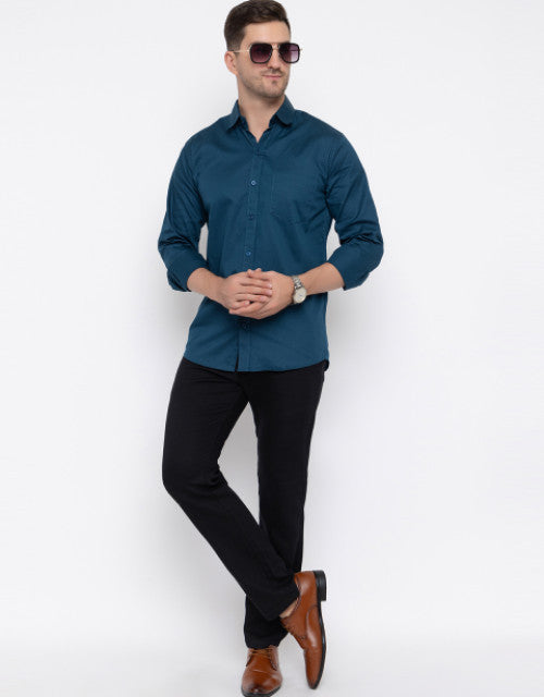 Men Regular Fit Solid Spread Collar Casual Shirt