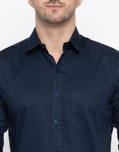 Men Regular Fit Solid Spread Collar Casual Shirt