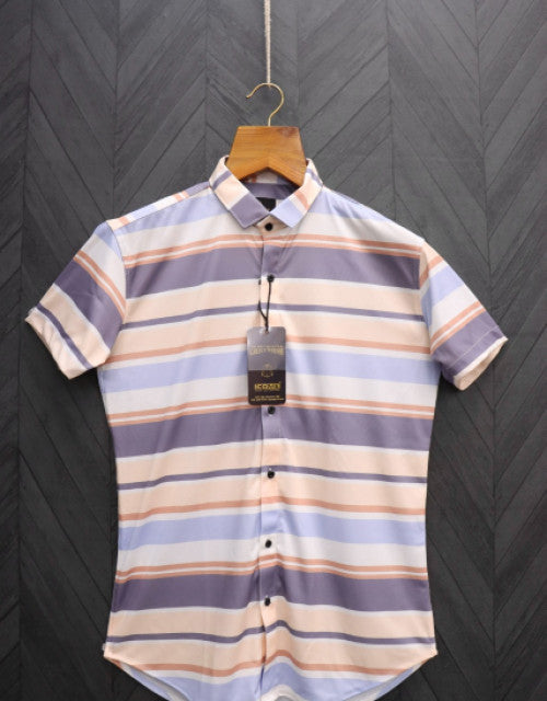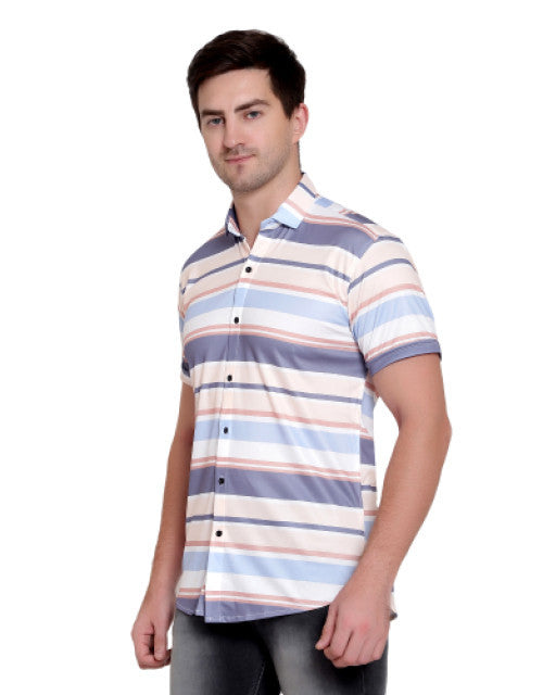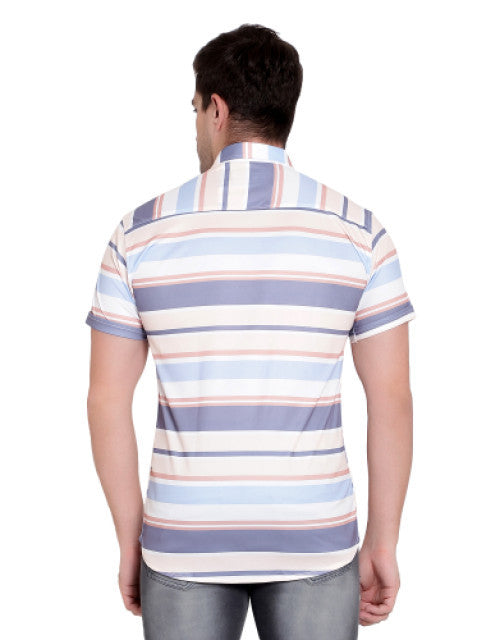 Men Regular Fit Striped Ribbed Collar Casual Shirt