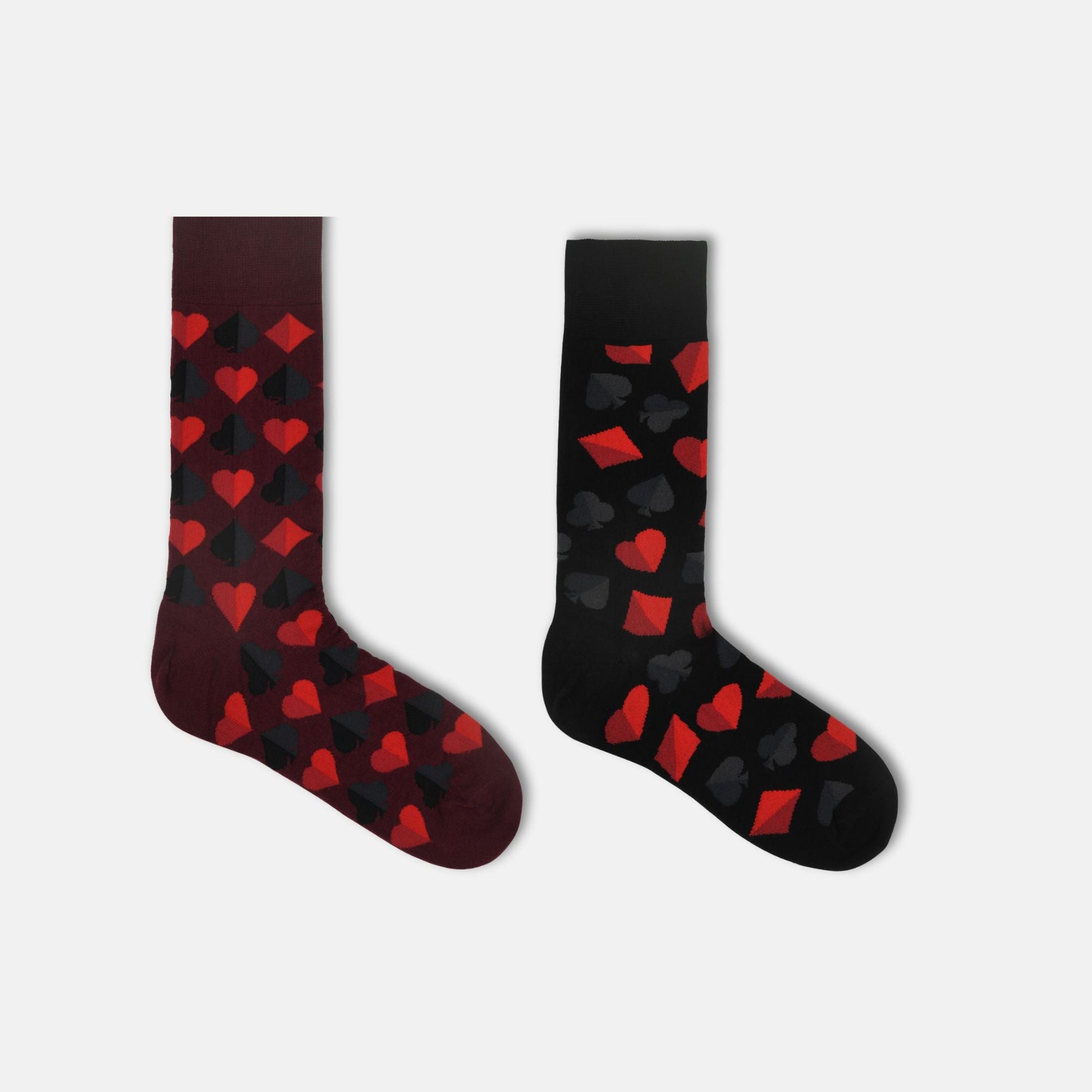 The socks pack is designed in Spain with a pattern of hearts, spades, clubs and diamonds. The trendy colors and patterns not only look good during the festive seasons but all year around!