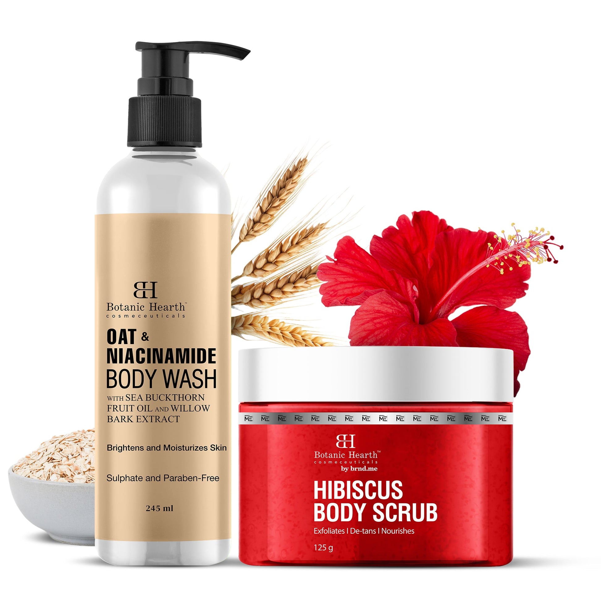 Oat & Niacinamide Bodywash & Hibiscus Scrub Combo (Set of 2)