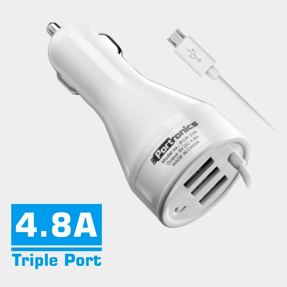 PORTRONICS CAR POWER II 4.8A CAR CHARGER WITH MICRO USB CABLE & 3 USB PORTS