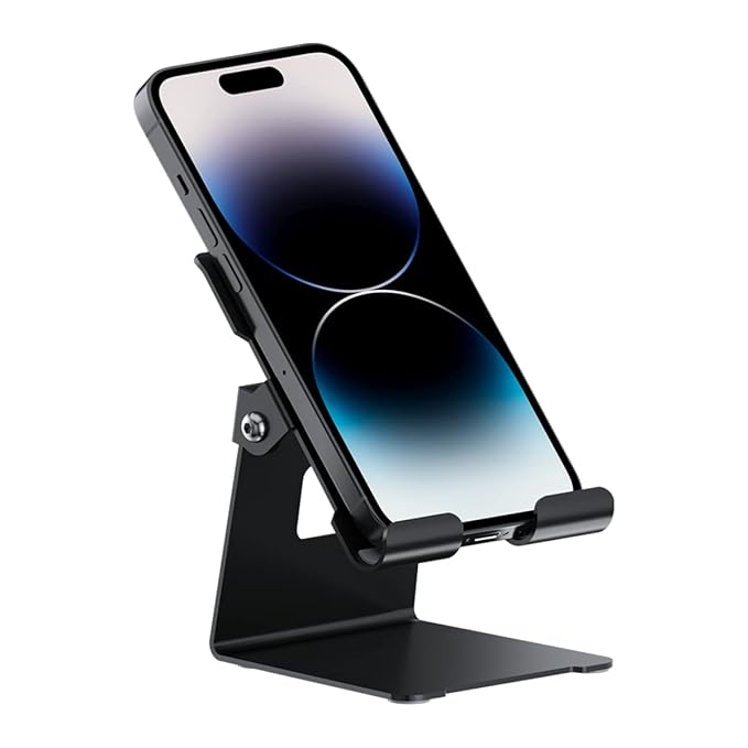 The Portronics Modesk 5 is the perfect accessory for a modern lifestyle. This strong aluminium mobile stand is designed to provide you with the best viewing angle with its 110-degree hinge movement and horizontal view support. Put your smartphone or tablet securely in the mobile holder and enjoy content, browse or attend video calls in comfort. The anti-slip base ensures that your device is firmly held in place and the mobile stand can be easily moved around to create a dedicated space for your smartphone or laptop on a messy desk or table. Make your work or home life easier with the handy Portronics Modesk 5..[THE DESIGN IS PORTABLE] : Sometimes your desk gets full and messy. You place your smartphone or tablet in that mess and then go to extreme lengths to find your phone. The Mo desk 5 is here to make dedicated space for smartphone and tablets. The mobile stand is portable and perfect for home and office use..[MOBILE HOLDER FOR SMARTPHONES AND TABLETS] : The design of the mobile holder accommodates both smartphones and tablets of both iOS and Android devices..[MULTIPLE ANGLES] : The ergonomic stand has 110° hinge movement that allows you to view your smartphone/tablet from an angle suitable for your eyes..[ERGONOMIC DESIGN] : You can place the smartphone/tablet either vertically or horizontally. With vertical placement you can browse or attend video calls with the horizontal view you can free your hand and watch content on your smartphone/ tablet..- Warranty:1 Year