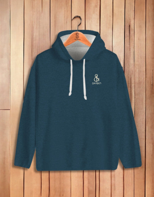 Pre_Winter Men Solid Hooded Neck Poly Cotton Blue T-Shirt ( Multi_Color )