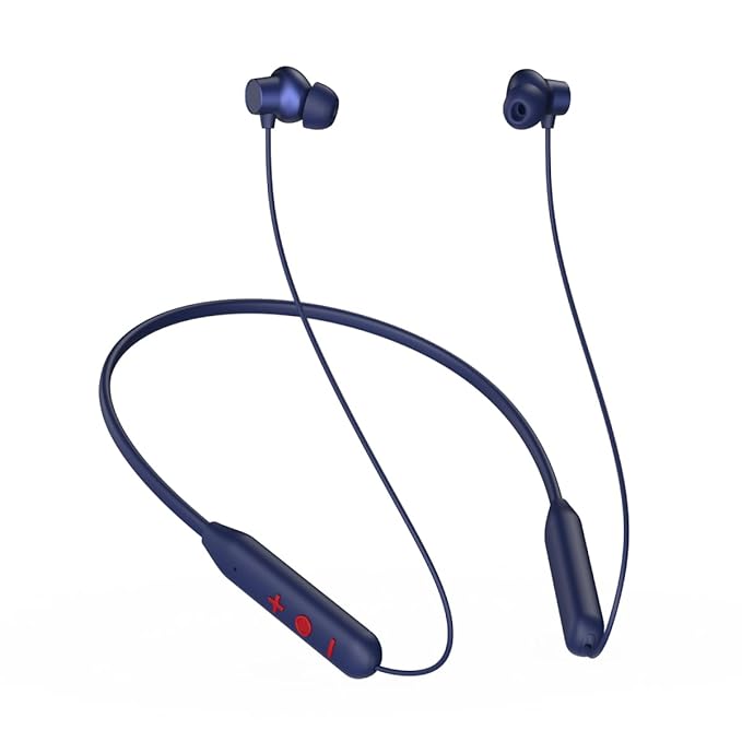 pTron Tangent Eon In-Ear Neckband with Mic, 14Hrs Playtime, SafeBeats Design Ear Health & Comfort, Bluetooth 5.3, Dual Device Pairing & Type-C Fast Charging & IPX (Dark Blue)