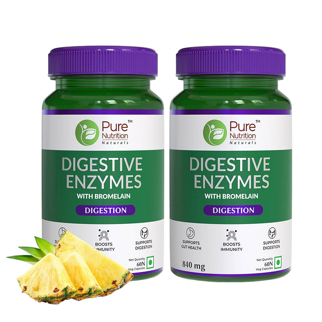 Pure Nutrition Digestive Enzymes Supplement with Bromelain Supports Digestion and Better Absorption of Nutrients for Men & Women- 60 Veg Capsules (Pack of 2)