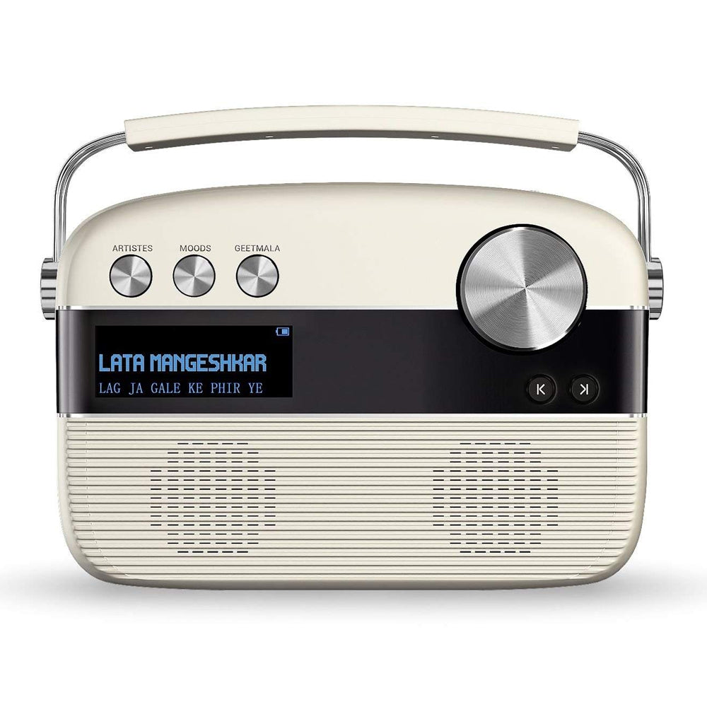 This portable digital music player with in-built stereo speakers comes pre-loaded with 5000 evergreen Hindi songs. With the option to tune into FM, Carvaan doubles up as your home radio too. You can also enjoy your personal collection of songs by plugging in a USB drive or streaming songs from your phone to the Carvaan via Bluetooth. It works on a rechargeable battery that lasts up to 5 hours. The product is backed by an all India service network, providing 12 months in-home warranty support. The 5000 songs music collection on Saregama Carvaan have been handpicked and classified based on singers, lyricists, music composers, moods etc.
