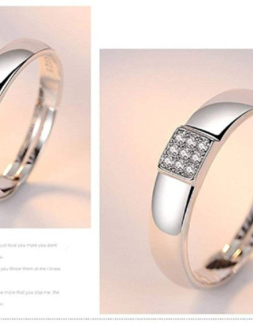 Silver-Plated Cubic Zirconia-Studded Adjustable Couple Rings