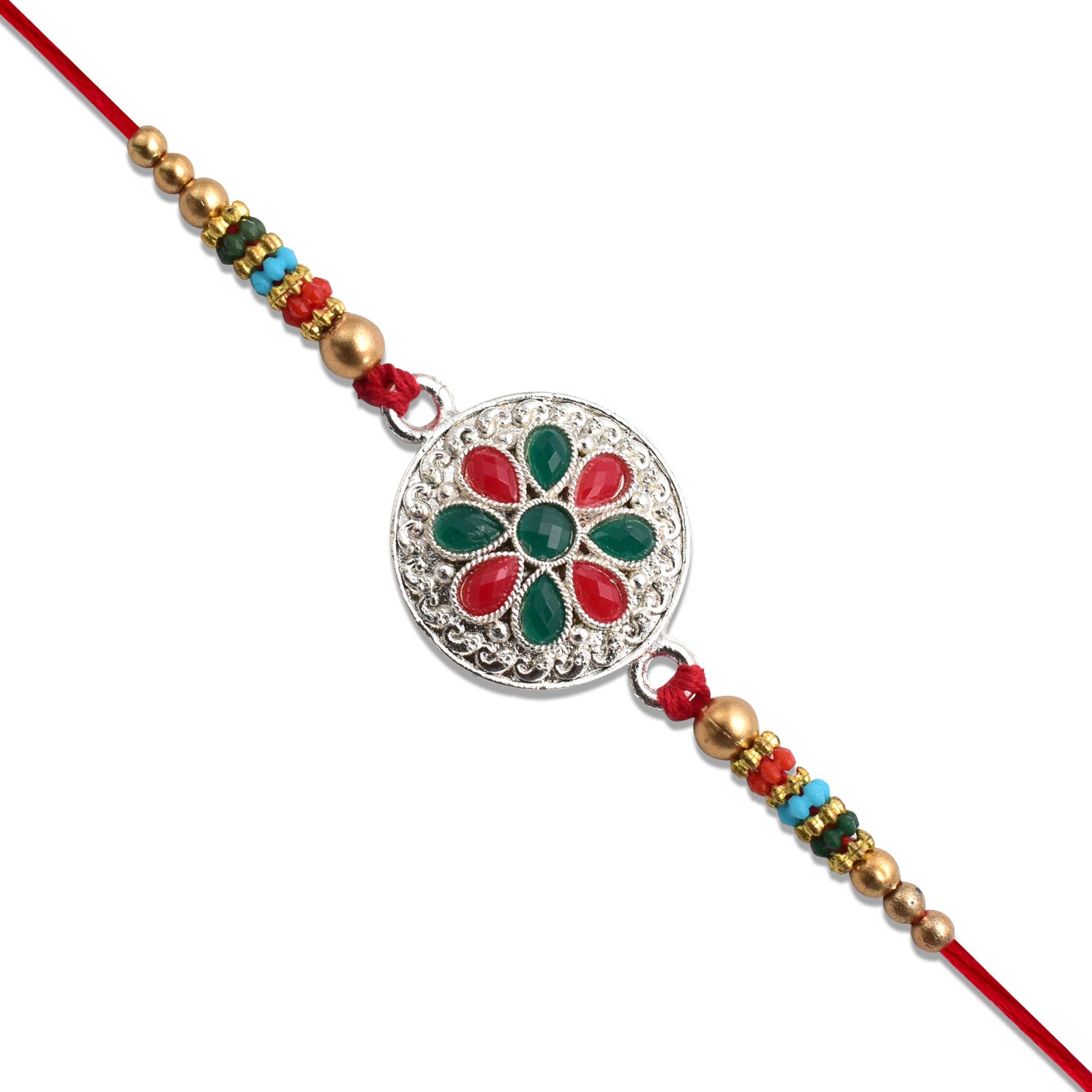 Honor the timeless bond between siblings with our intricately designed Rakhi. Crafted with care and elegance, this Rakhi blends traditional charm with modern aesthetics. Whether you're near or far, send your love and blessings with this exquisite thread of affection.