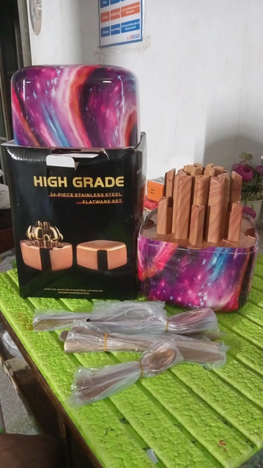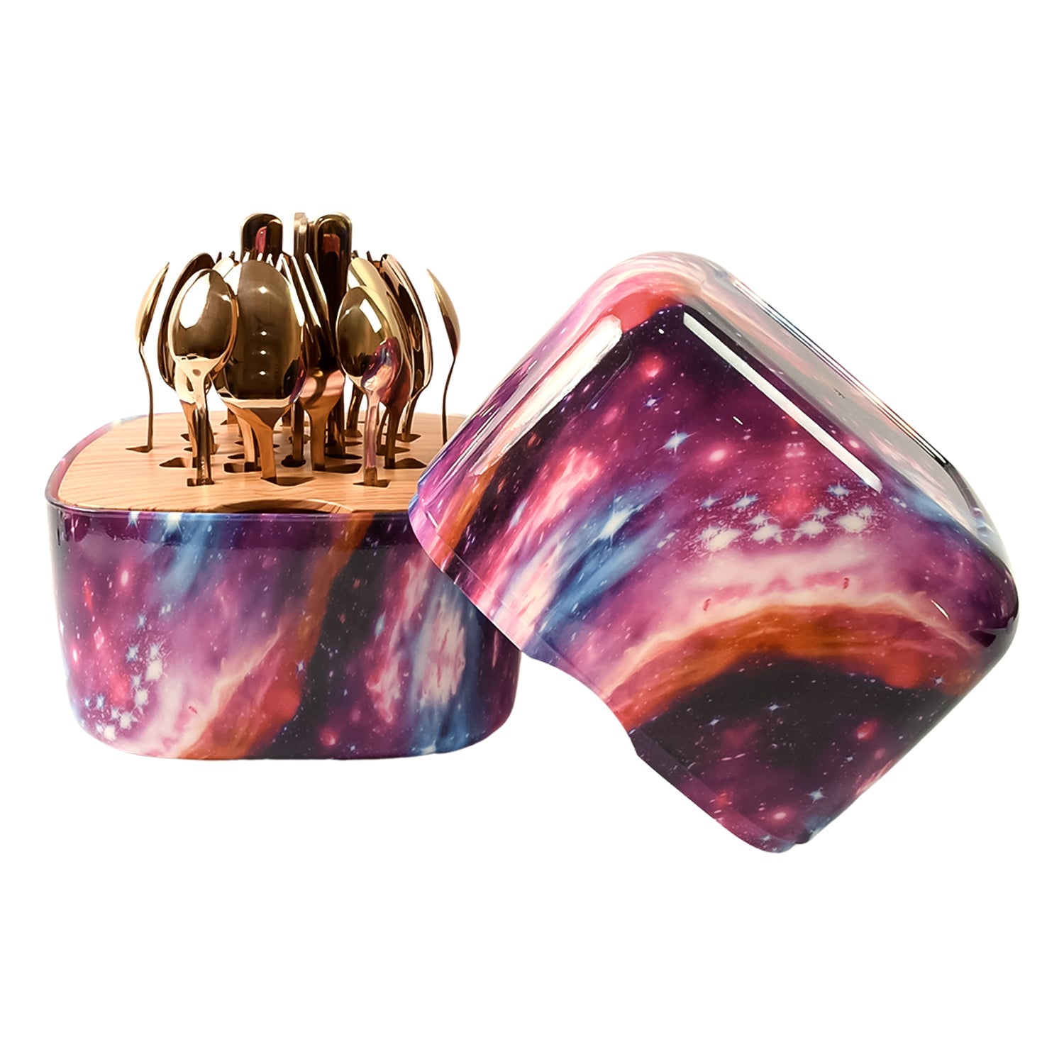 Unique Golden Egg Storage Modern Tableware Steak Knives Fork Flatware Set Royal Spoon Set Tableware Gold Cutlery Set Dishwasher Safe Mirror Finished With Gift Box for Halloween 24Pcs Set)