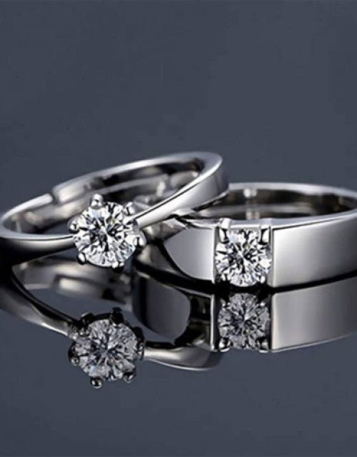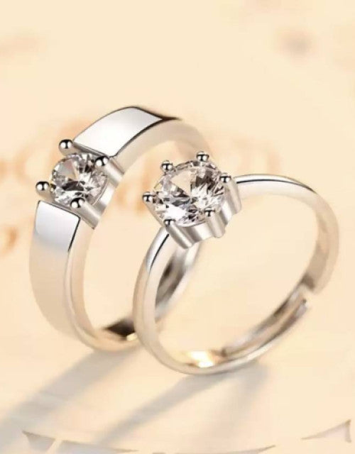 Stainless Steel Zircon Sterling Silver Plated Ring Set
