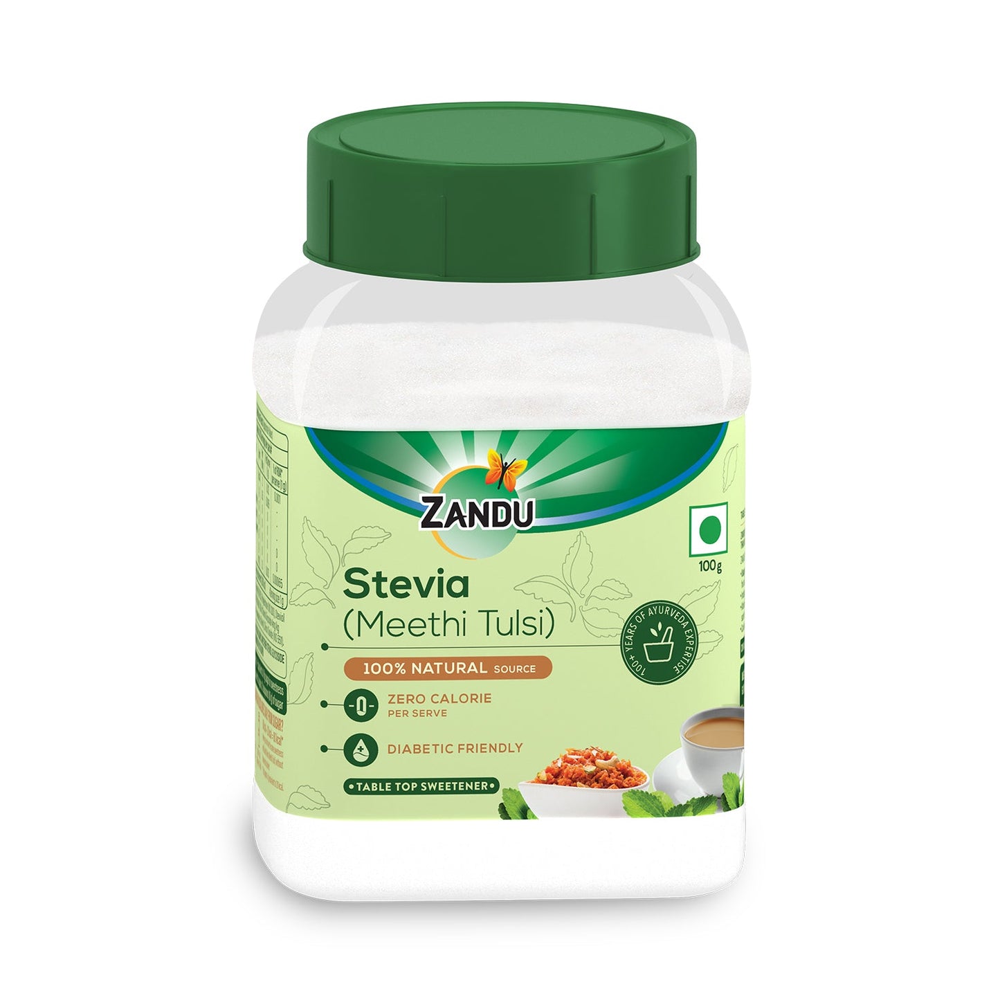 Developed by ZAARC and backed by 100 years of Zandu’s expertise and history in Ayurveda. Zandu Stevia powder is 100% natural, zero in calories, and diabetic-friendly.