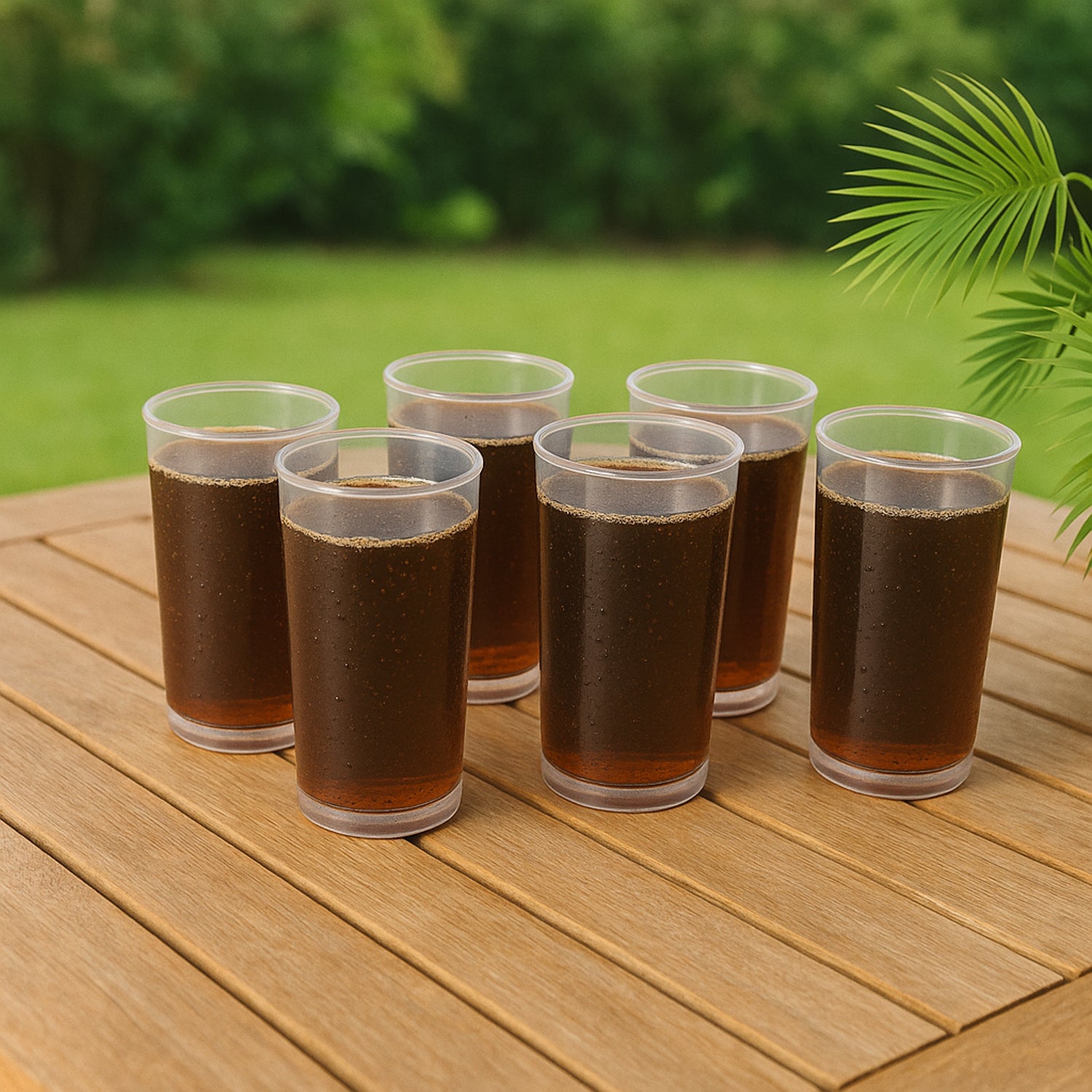 The Supermom Martini Clear Glass Set is a versatile and elegant drinkware collection designed for everyday use as well as special occasions. This set of 6 transparent 300 ml glasses offers a simple yet stylish cylindrical design, making it perfect for serving water, juice, cocktails, mocktails, cold coffee, lassi, or other refreshing beverages. Crafted from high-quality, food-grade, unbreakable plastic, these glasses combine the clarity of glass with the durability of plastic. Lightweight, reusable, and easy to clean, they are an excellent choice for homes, cafes, restaurants, and events.