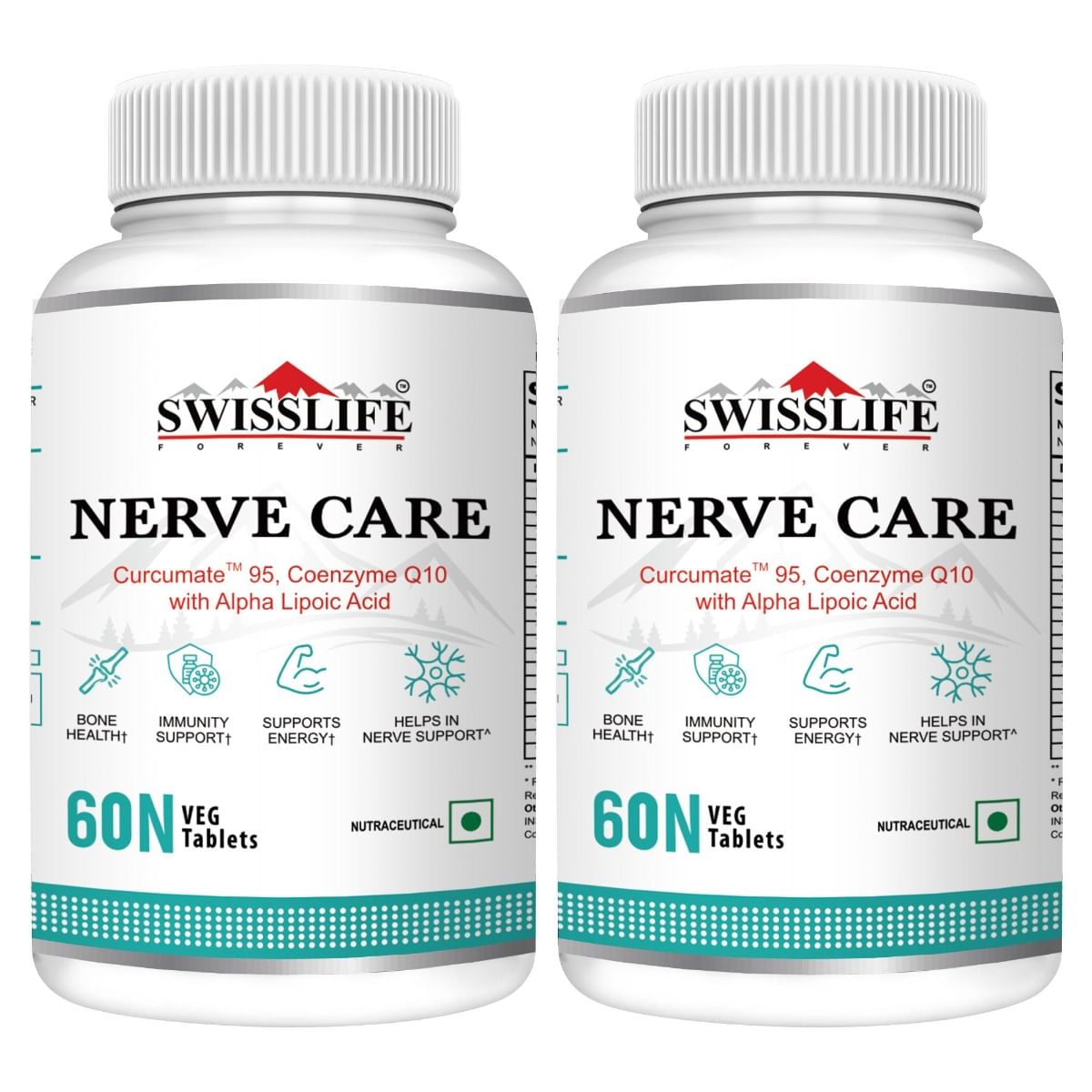 SWISSLIFE FOREVER Nerve Care Tablets | Multivitamins | Supplements with CurcumateTM 95 (Curcumin), Coenzyme Q10 with Alpha Lipoic acid Help in Nerve pain, Bone Development, Eye, Skin & Overall Health for Men & Women (60 Tablets) Pack of 2