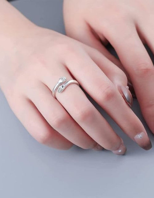 Valentine Stylish Silver Hug Ring and Lucky Owl Eye Ring Green Eye Latest Trendy Stainless Steel Couple Ring