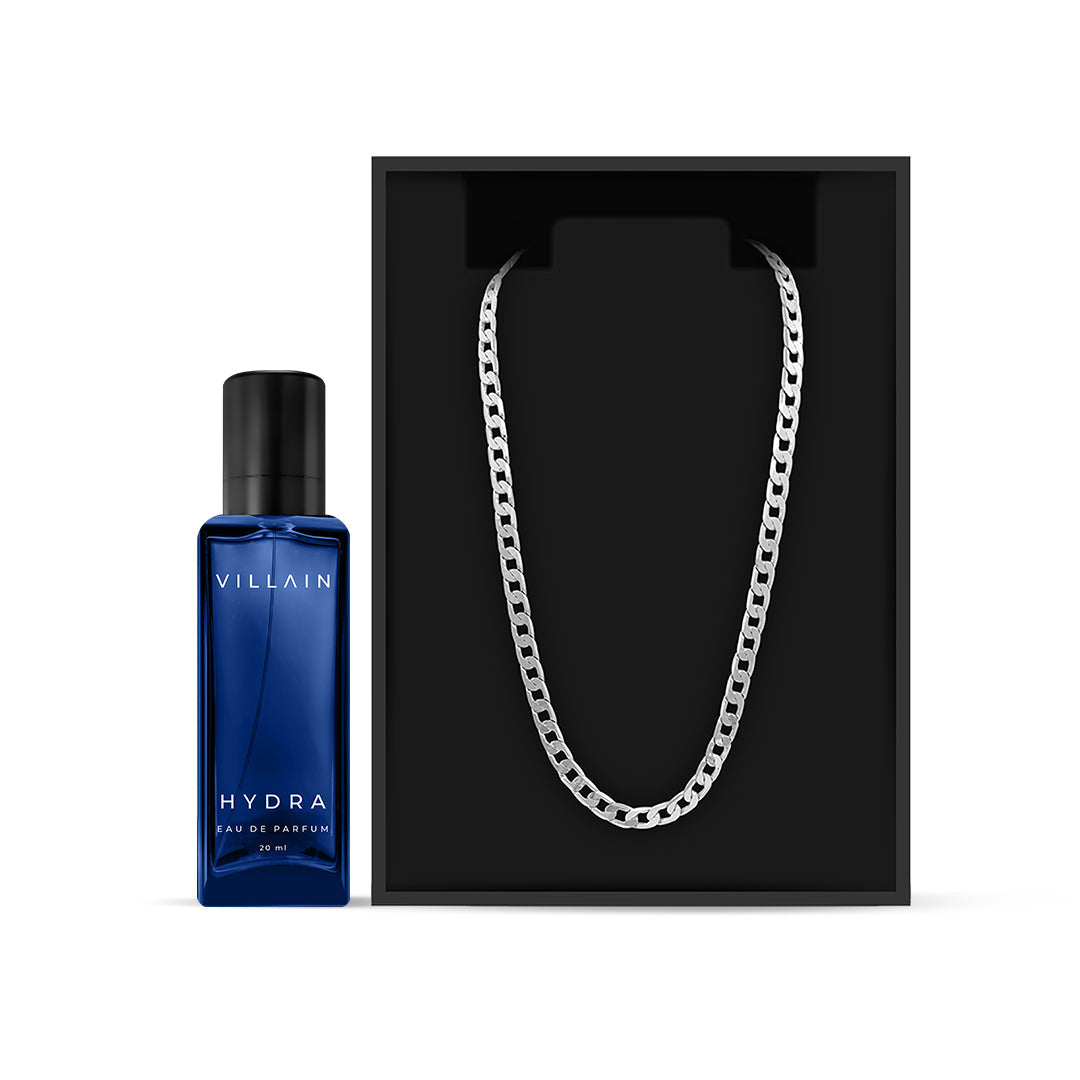 • Pack of 2; Villain Rhodium-Plated Silver Chain & Villain Hydra Eau De Parfum