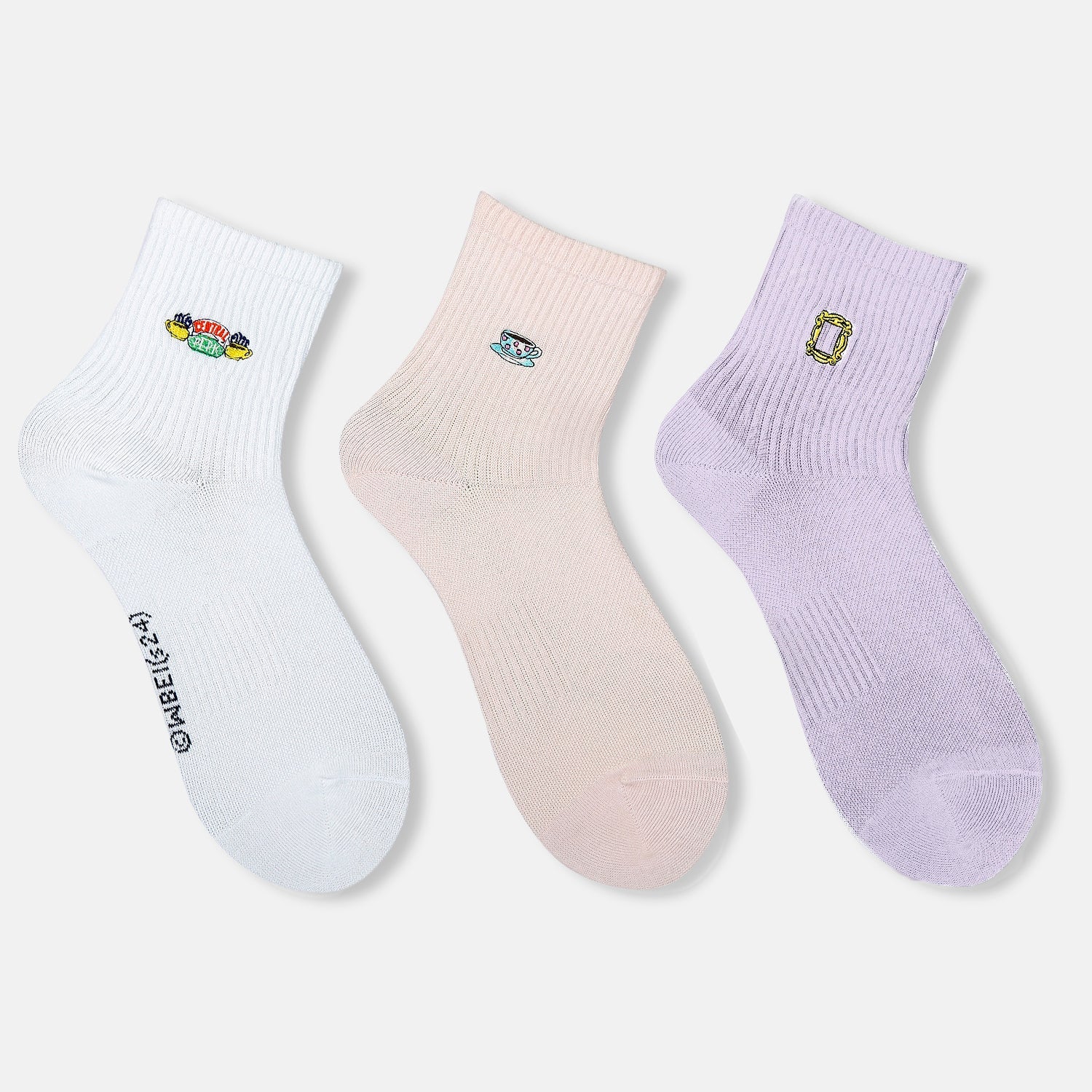 Made using a combination of modal, ply, spandex, nylon and elastic, these high ankle socks ensure utmost comfort, stretchability and grip; like a best FRIEND for your feet. The iconic embroidery adds to their charm.