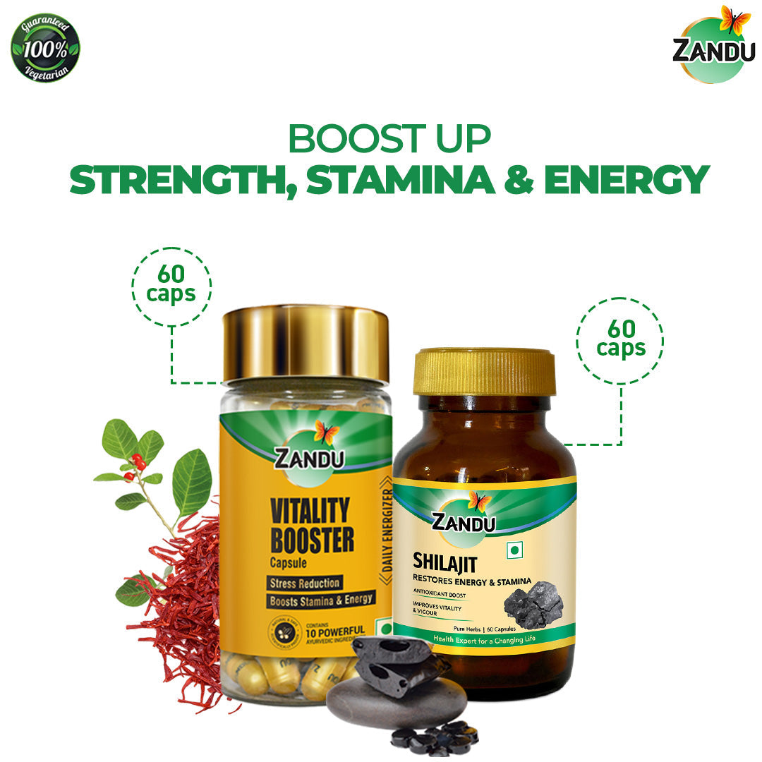 Zandu Vitality Booster Capsule (60 Caps) + Shilajit (60 Caps)