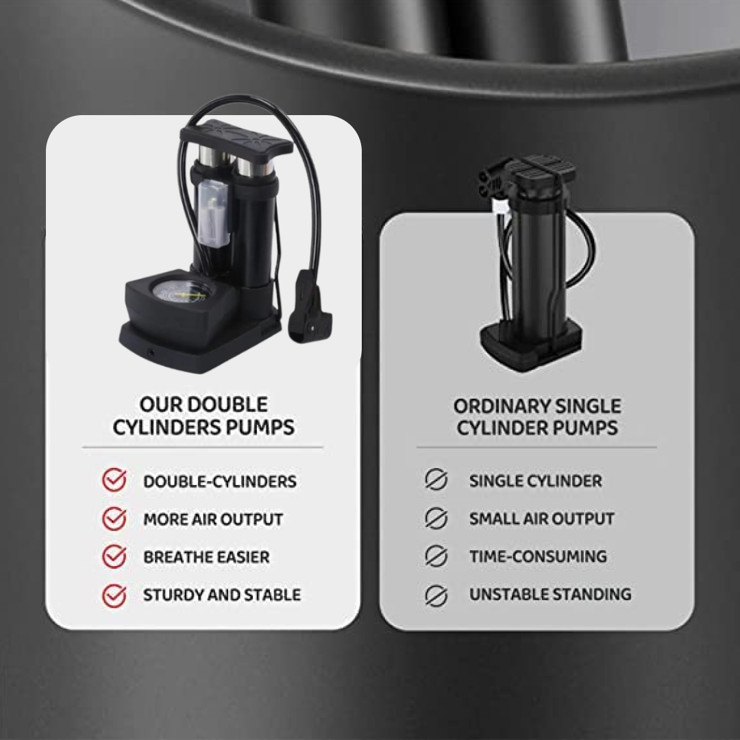 Easy operation-foot operated air pump, you just attach the pump to your bike tire and lock the lever tightly, effortless to inflate.