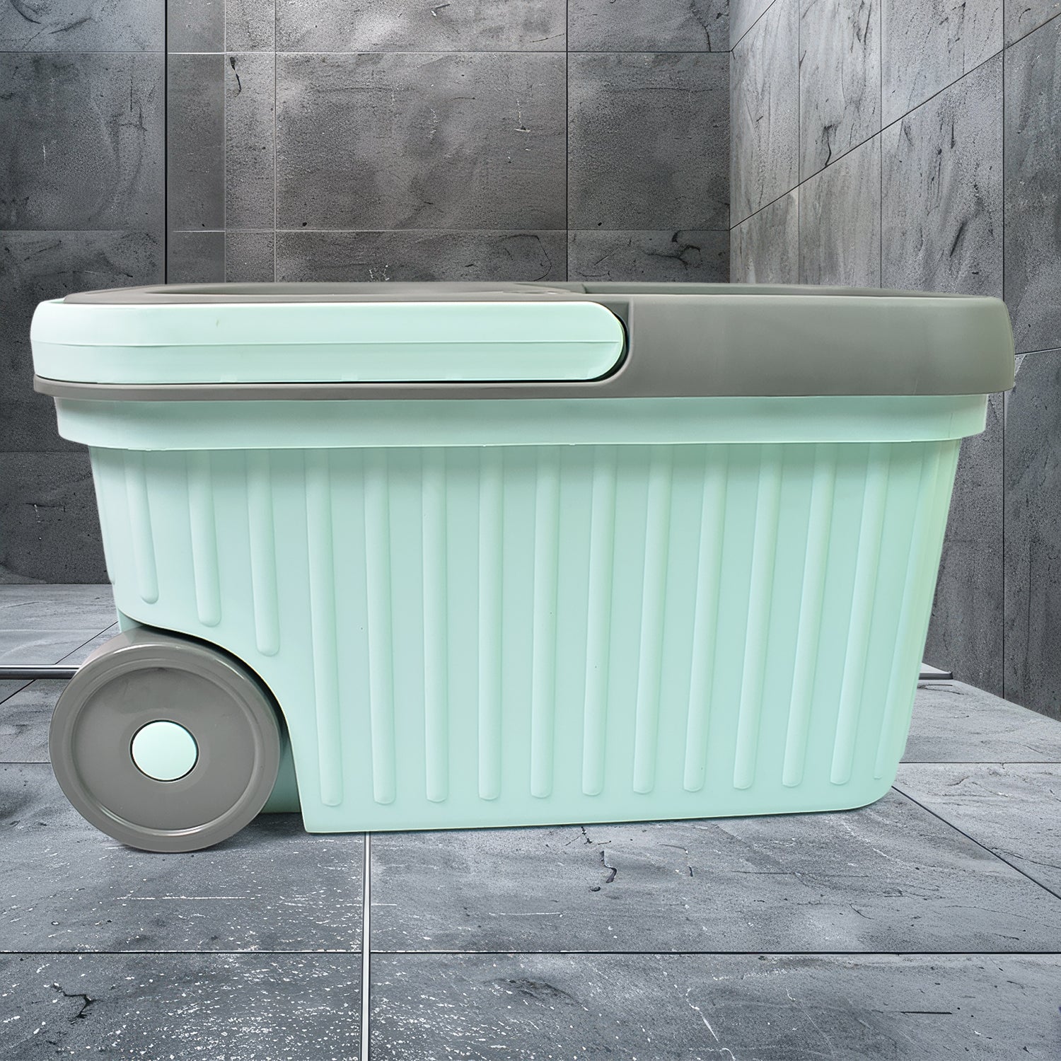 - Plastic Spin Mop comes with easy wheels and puller to easily carry the bucket around the house. You just need to open the drain spout in order to drain the dirty water.