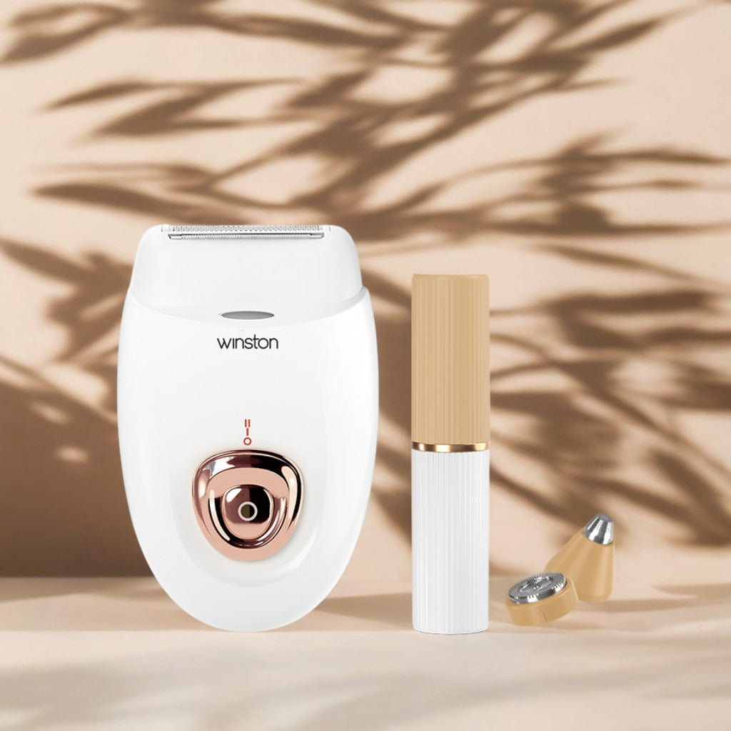 Skip the salon and get smooth, flawless results at home with this combo. The 2-in-1 Face & Eyebrow Trimmer offers precise touch-ups painlessly, while the 2-in-1 Body Epilator & Shaver removes hair from roots for smoother skin.