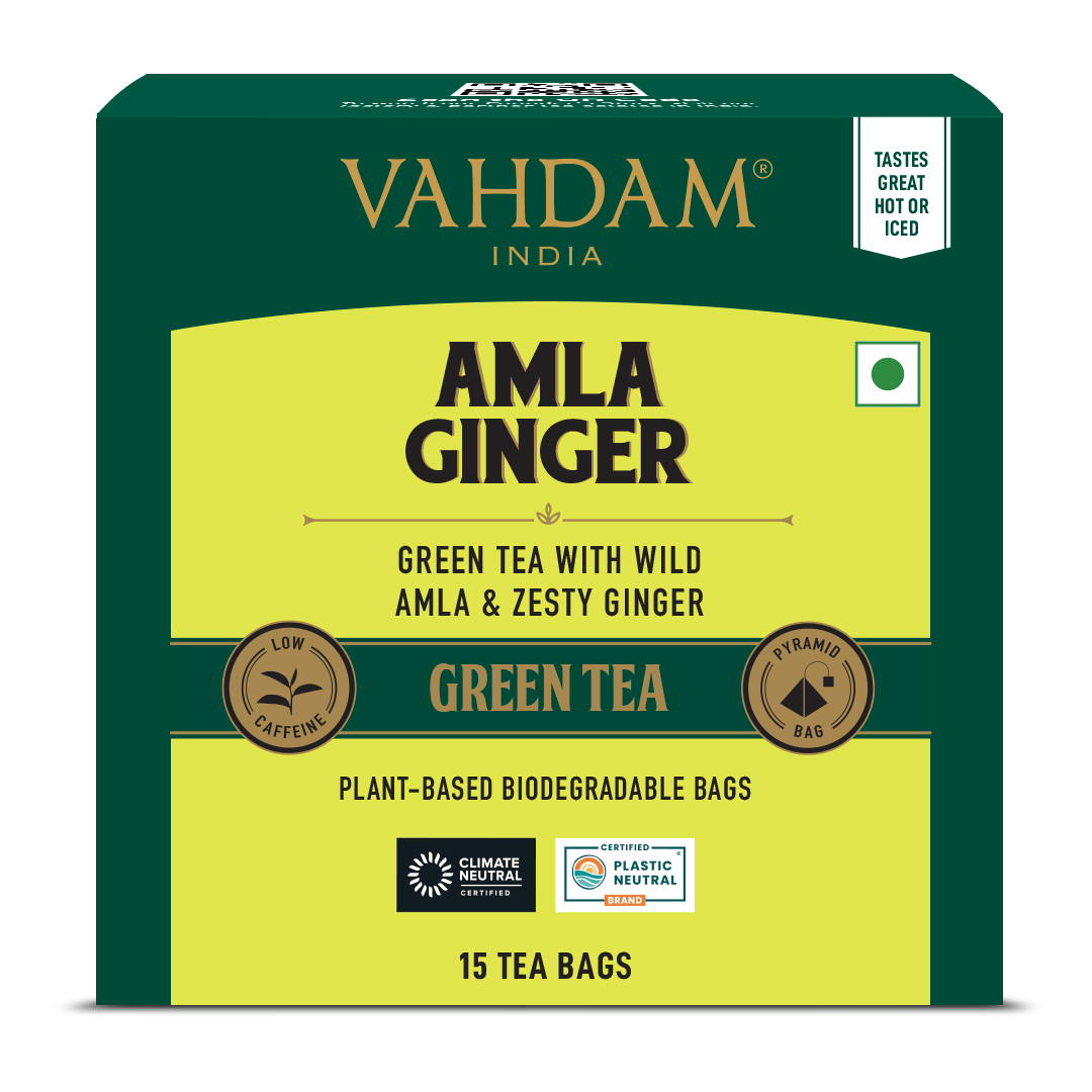 A blend of green tea, zesty amla, and a warming touch of spicy ginger. A perfect harmony of earthy, citrusy, and spicy notes for a refreshing experience.