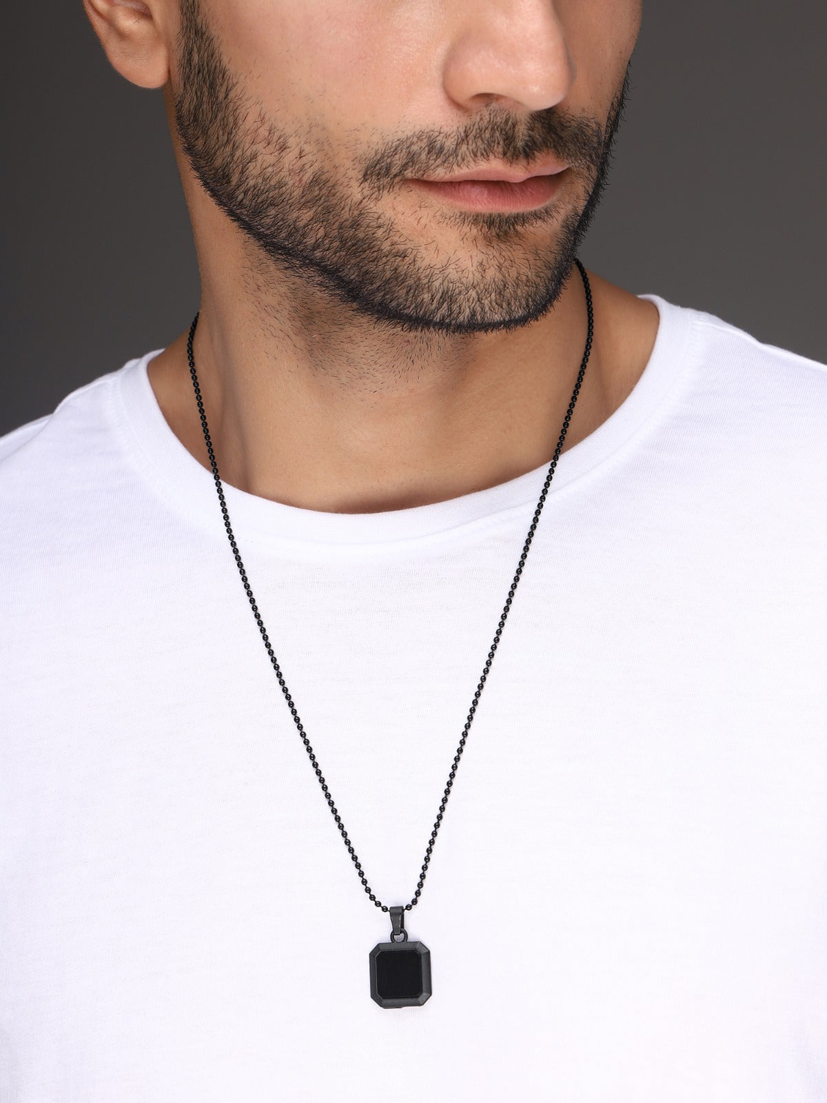 Bold By Priyaasi Black Plated Men's Chain with Square Pendant