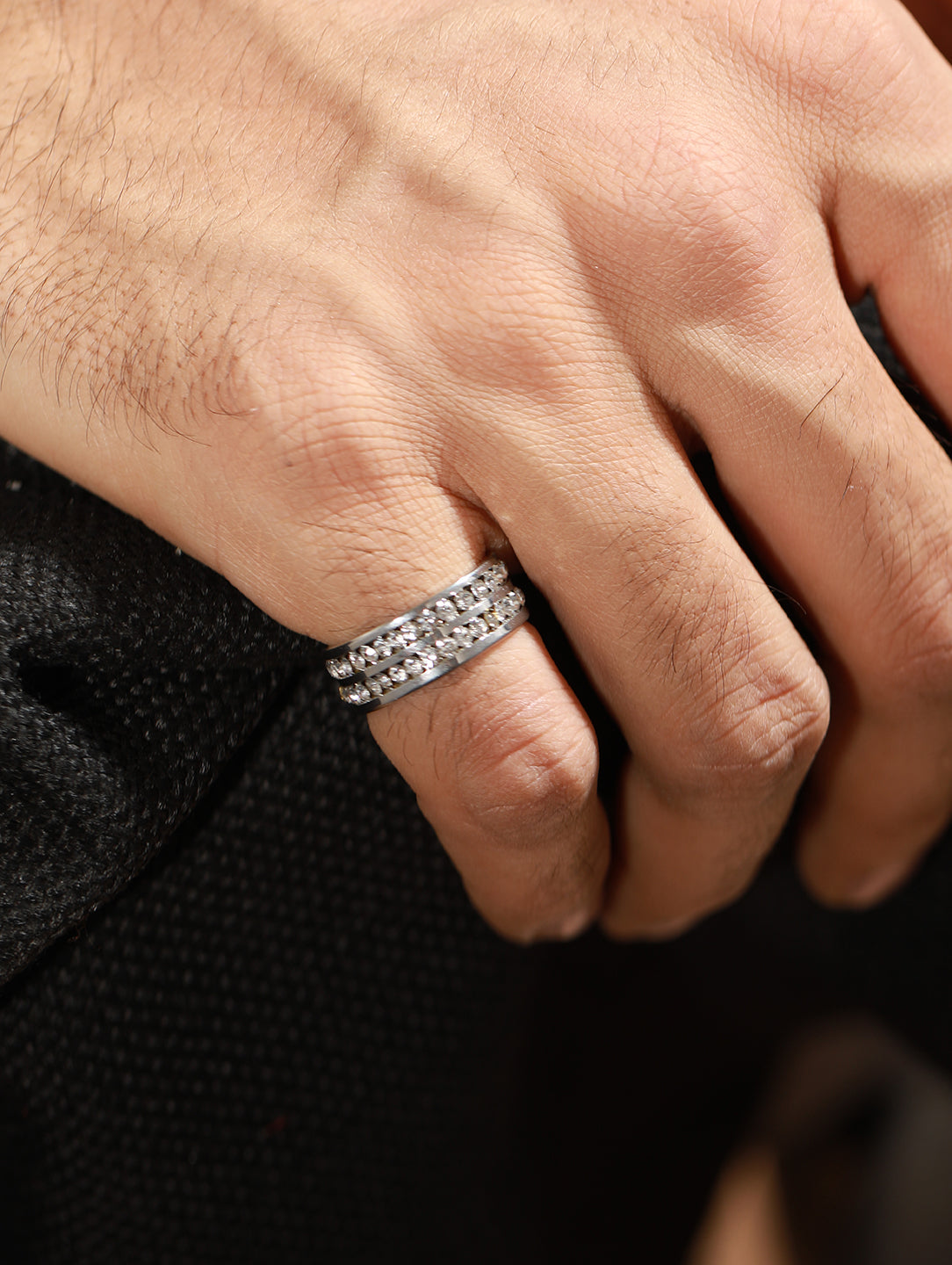 Bold by Priyaasi Stylish AD Studded Silver-Plated Finger Band Ring for MenBD-RNG-30033