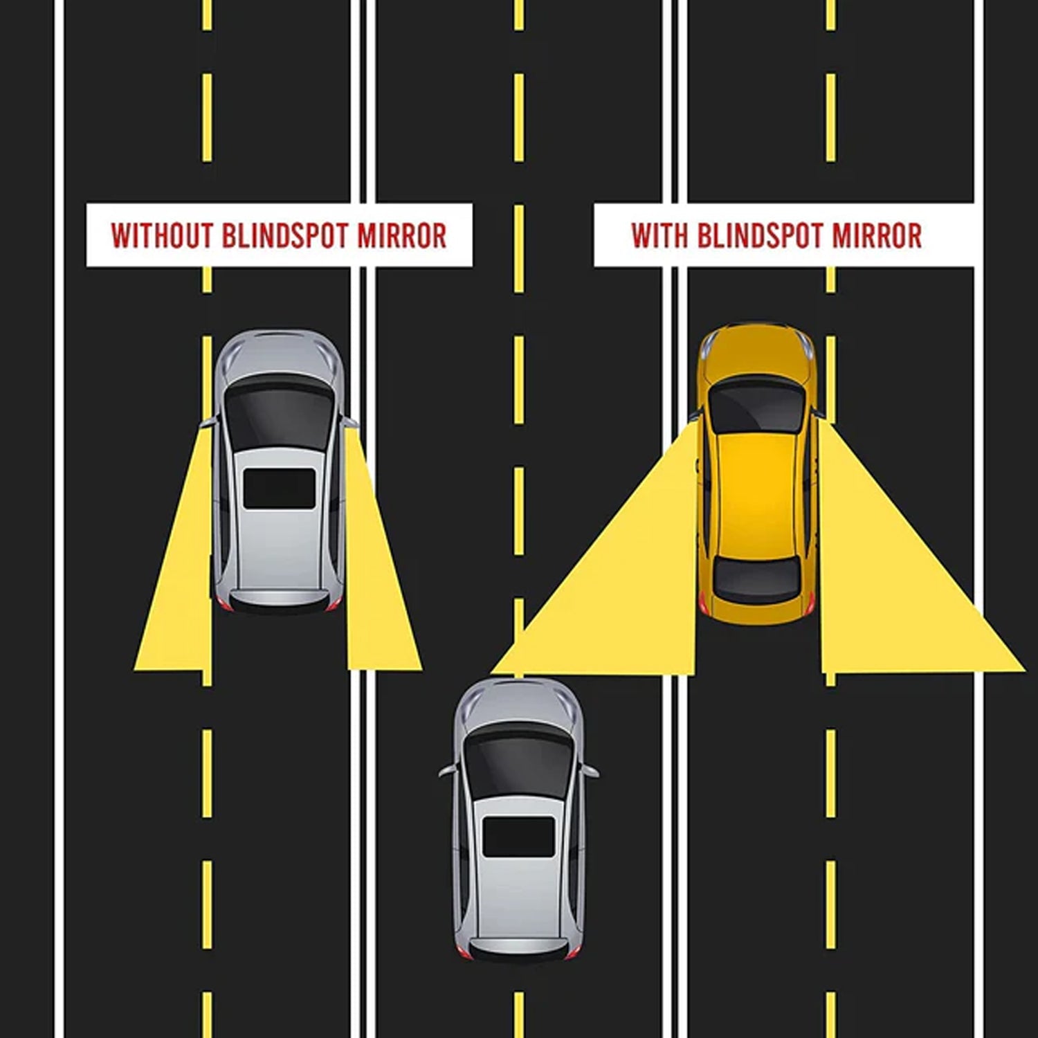 More wide visual angle, making the driver can see more wide space, effective to reduce the blind spot