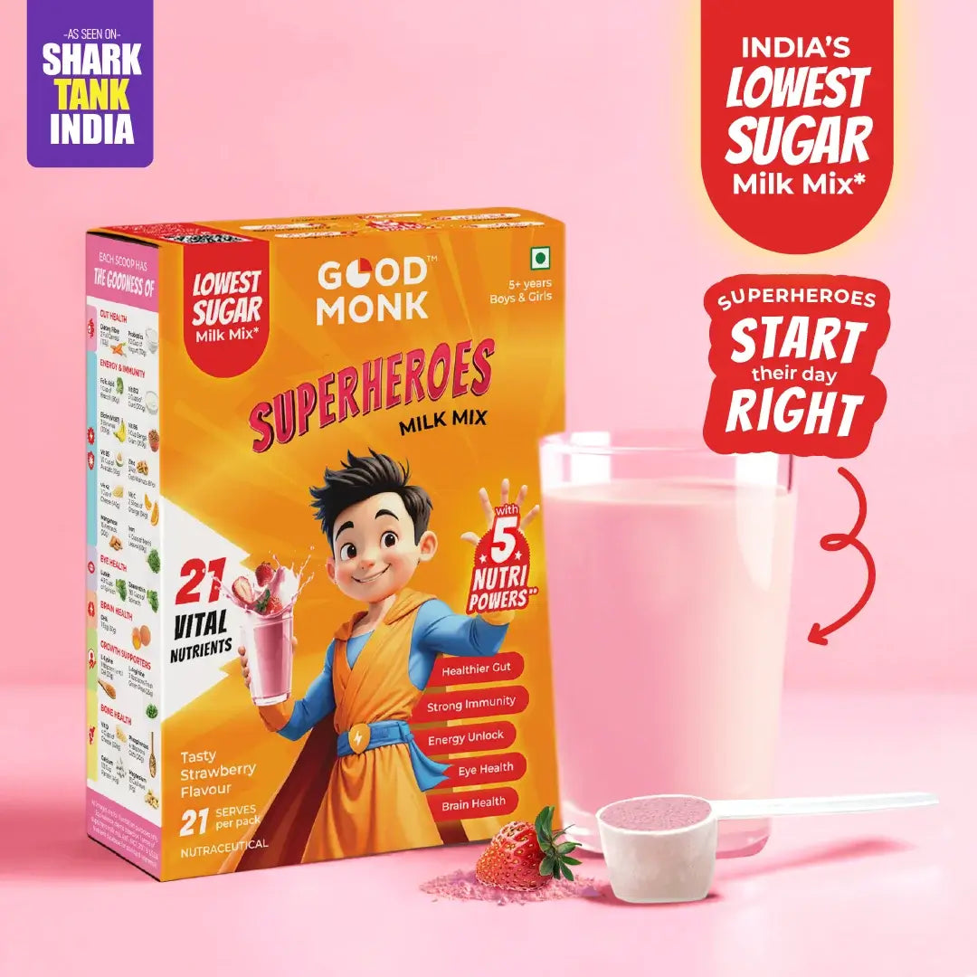 Good Monk Superheroes Milk Mix (Strawberry): Improves Energy, Immunity, Brain, Eye & Gut Health8.91E+12