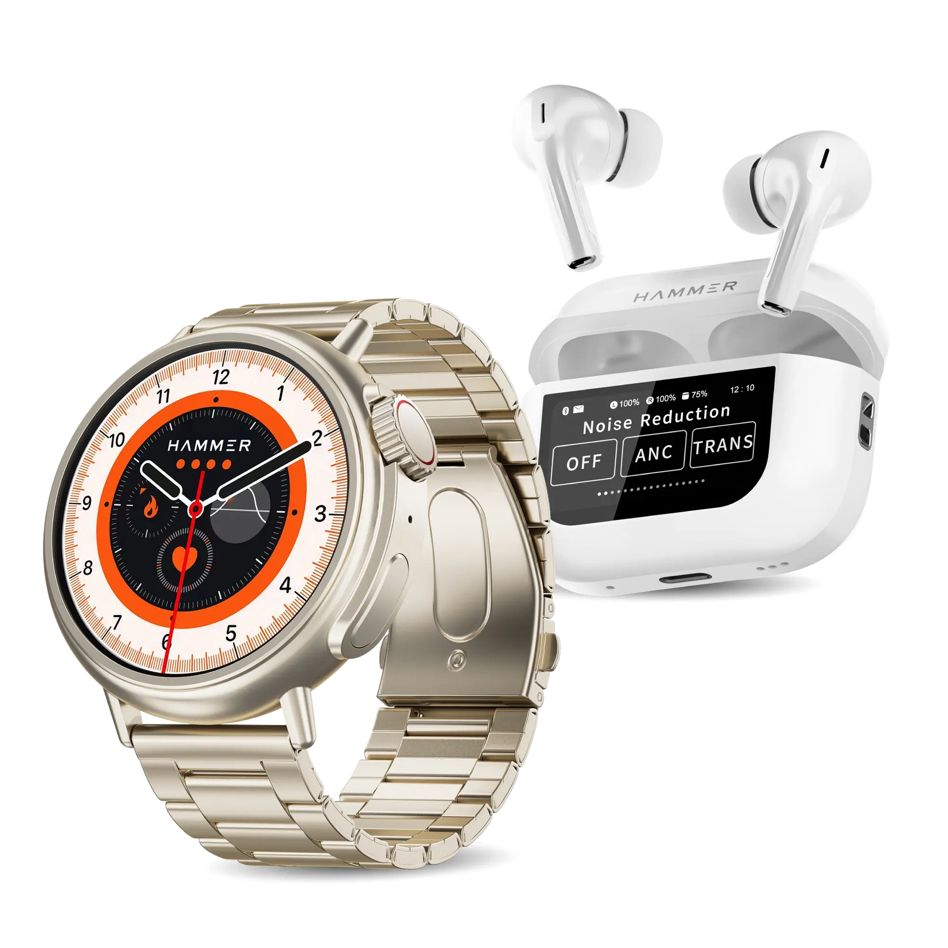 Hammer Active 3.0 Bluetooth Smartwatch & Screen TWS Earbuds (Combo)Active 3.0 Metallic Silver + Screen TWS