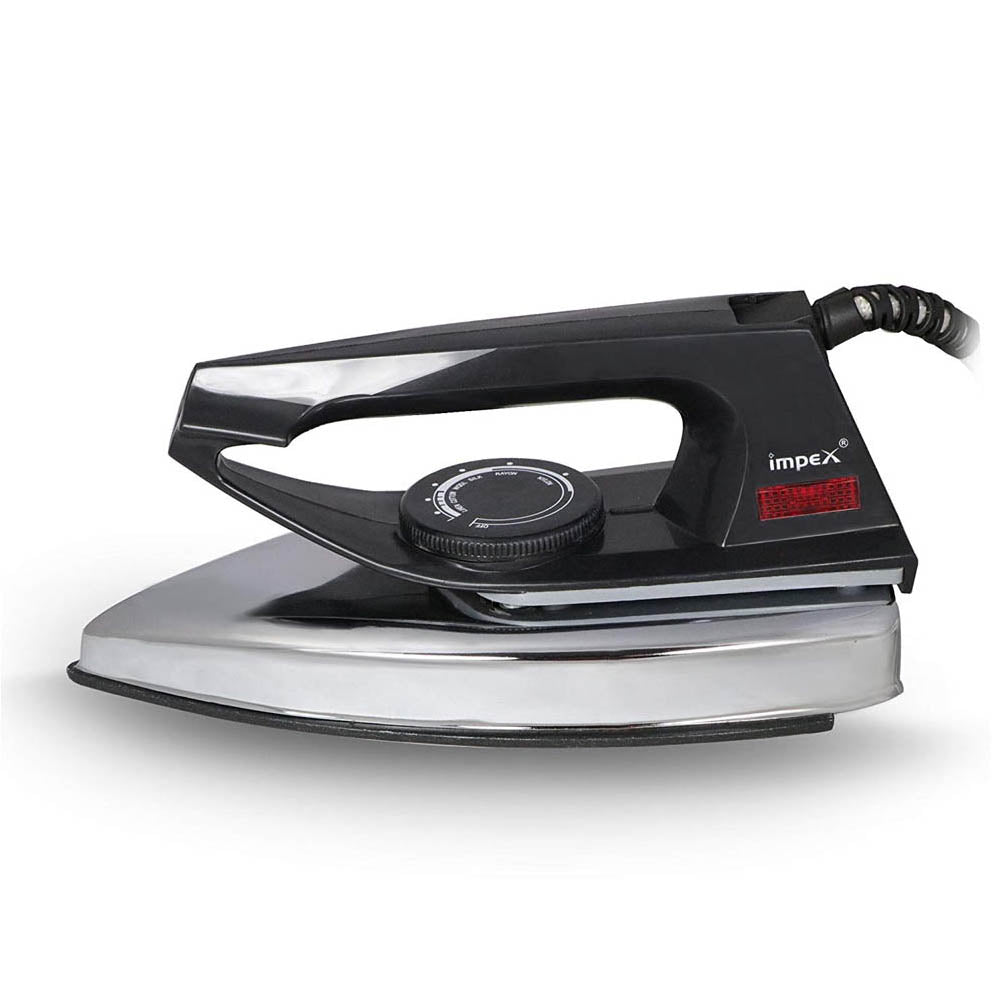 Ultra light weight dry iron with Teflon coated sole plate, chrome plated sheet metal body and variable temperature control. Remove all those rigid creases on your clothes instantly with the new Impex showy dry iron. To help you do this, the Impex dry iron has a multitude of features along with a sleek, artistic design. The Impex 750 watt dry iron comes with a 180 degree pliant swivel cord that simplifies the handling and makes it easy to use. And additional feature of over heat protection (270 degree).